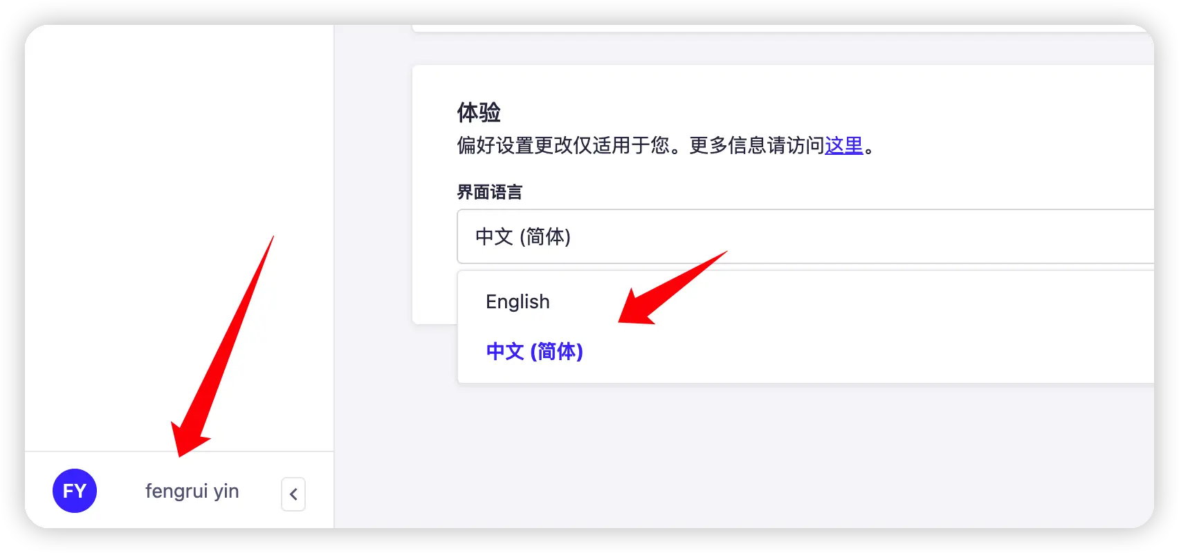 stapi后台左下角个人资料,设置洁面语言