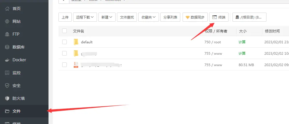 宝塔左侧菜单点击文件到wwwwroot目录下运行终端需要SSH密码