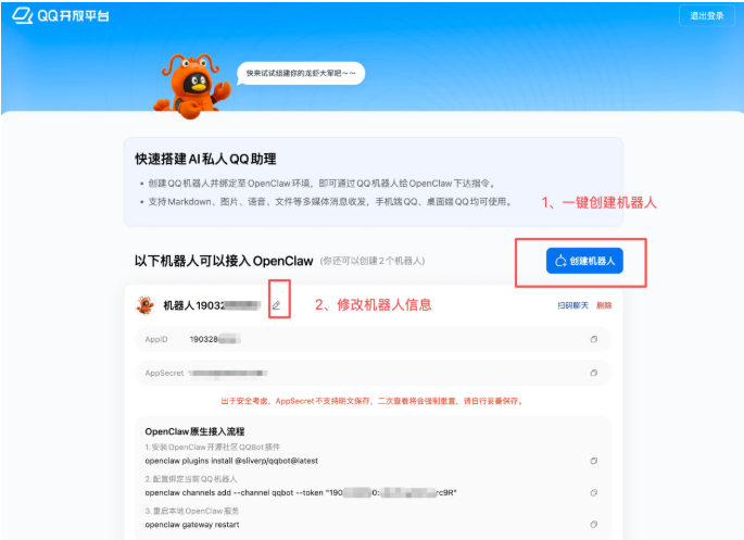 然后可以修改机器人的头像、昵称等信息,给你的龙虾起个好听的名字吧~
