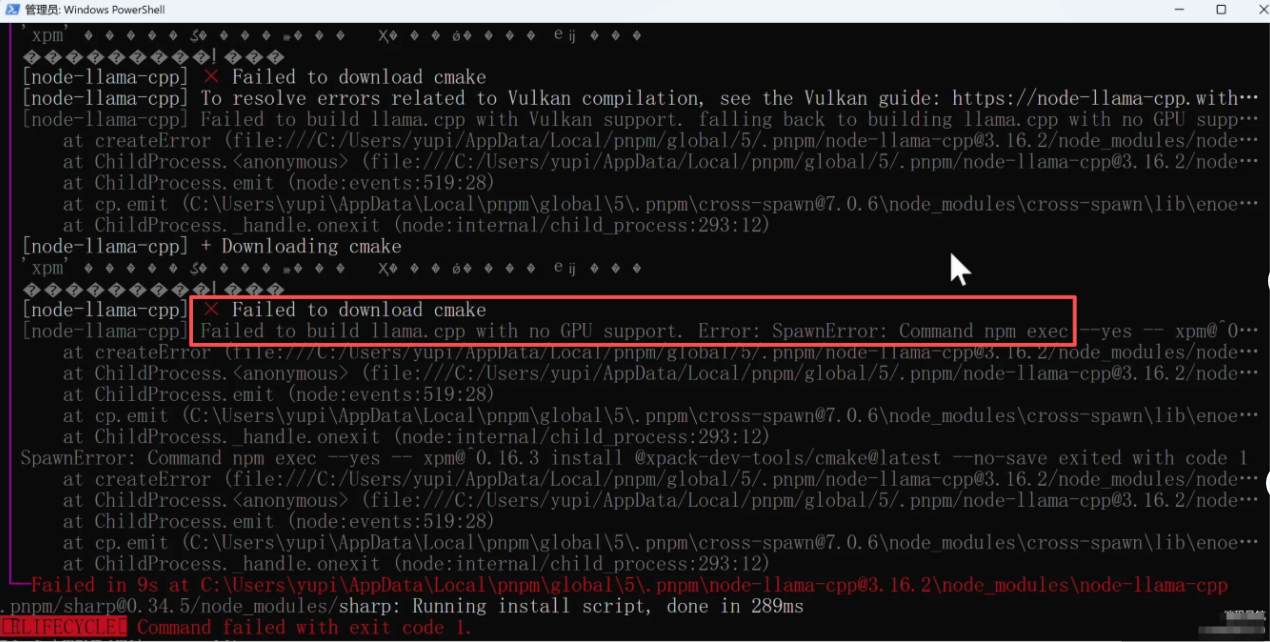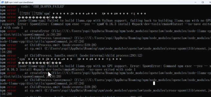 果不其然也报错了,因为一键安装脚本默认就是用npm来装的,根本原因一样。