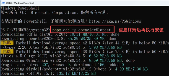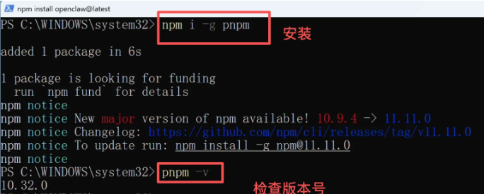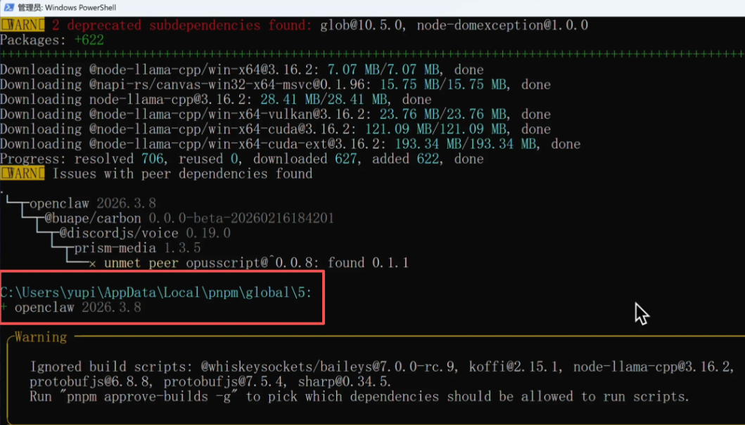 在新的 PowerShell 窗口中,用pnpm 来安装OpenClaw: