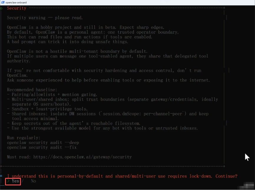 环境装好了,接下来进入OpenClaw的新手引导程序,定制你的小龙虾。