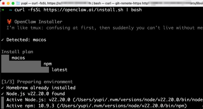 环境准备就绪,现在来安装OpenClaw本体。