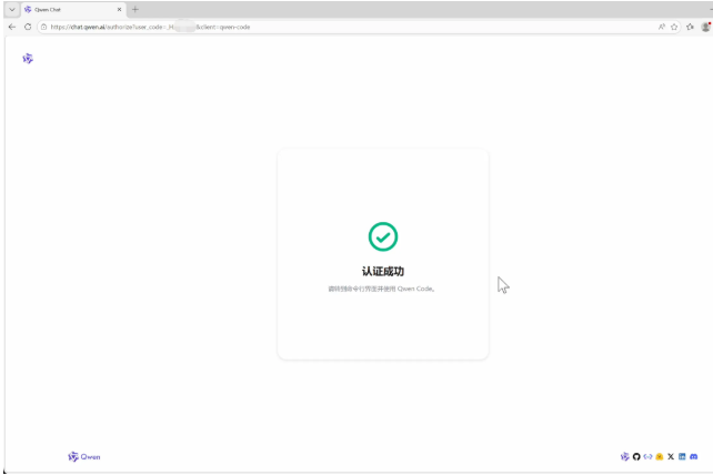 选择Qwen后,引导程序会自动打开浏览器让你登录授权: